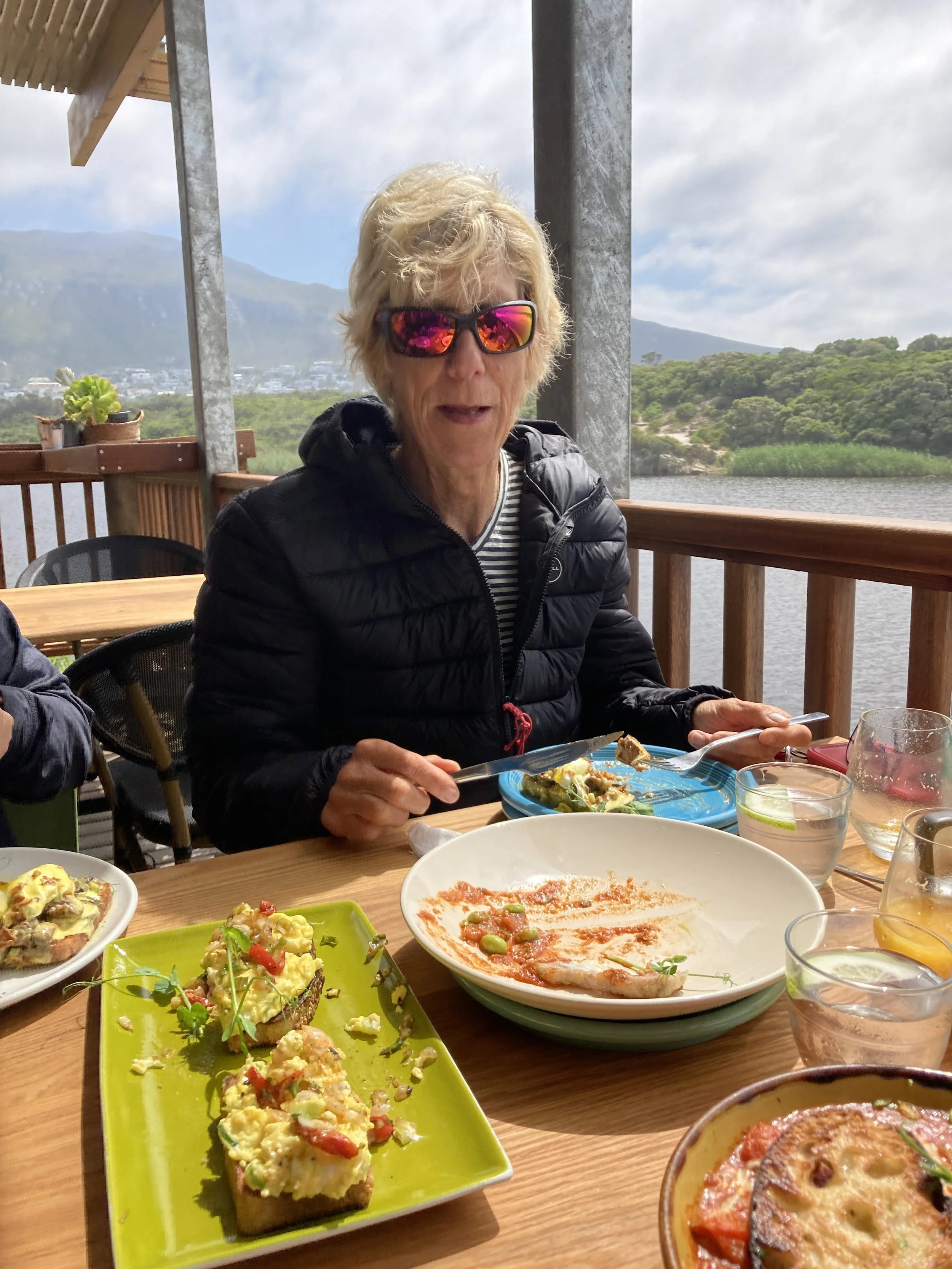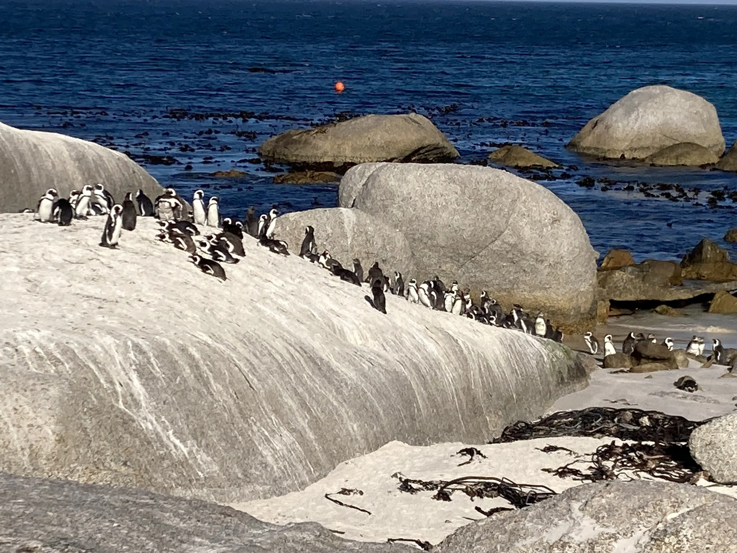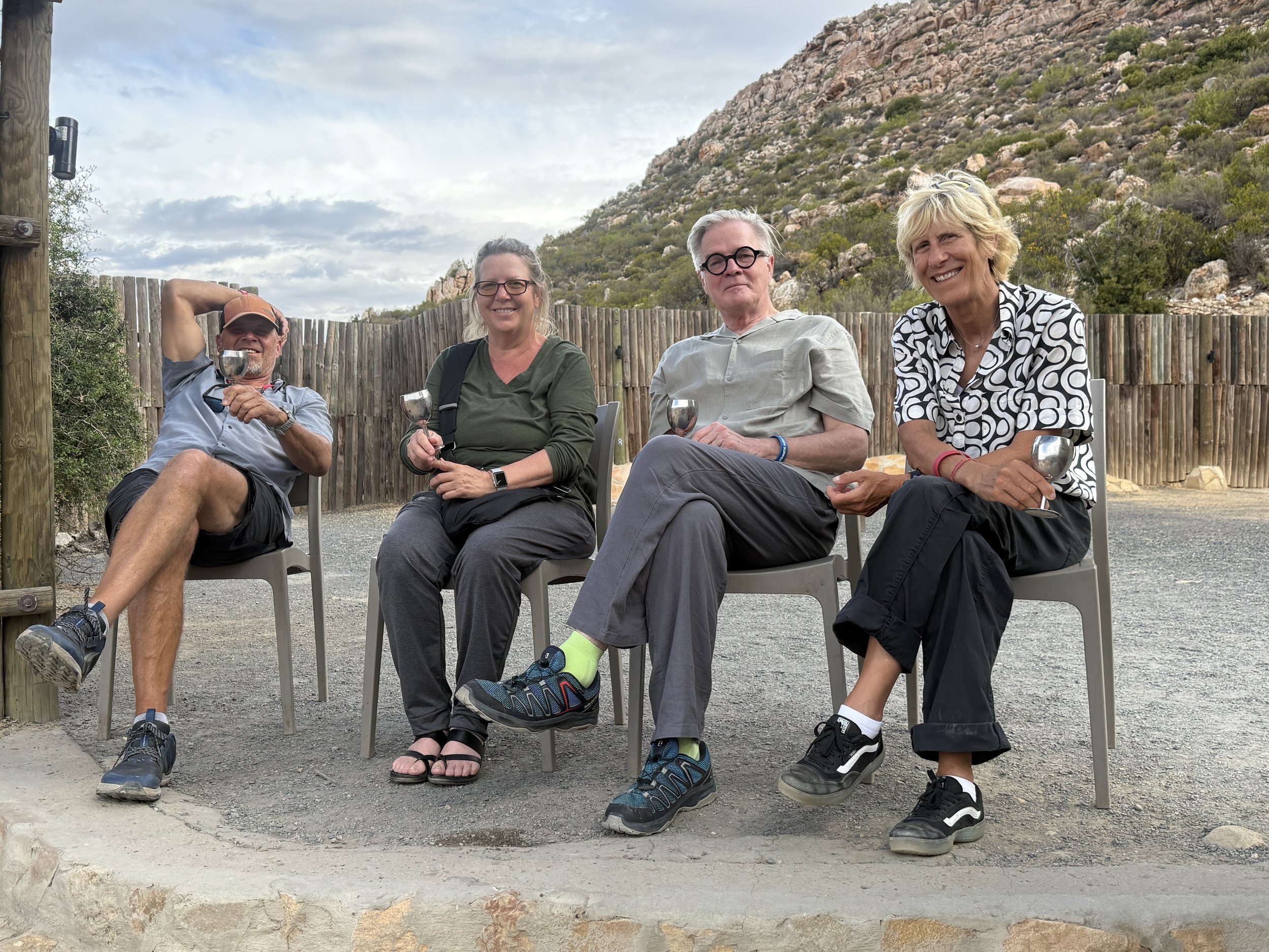 Next day we drove slightly east of Cape Town to Hermanus Beach, not far away from the point where the Atlantic and Indian Oceans meet. The landscape is striking: we hiked from our beautiful hotel, the Whale Coast All-Suite-Hotel along the shore line along the Hermanus Cliff path up to Grotto Beach, we we took a drink on Petra’s birthday at Dutchies. But the absolute highlight came the next morning with a breakfast that eclipsed all superlatives for all the four of us: The Milk on the Beach in Onrus. Once in a lifetime!