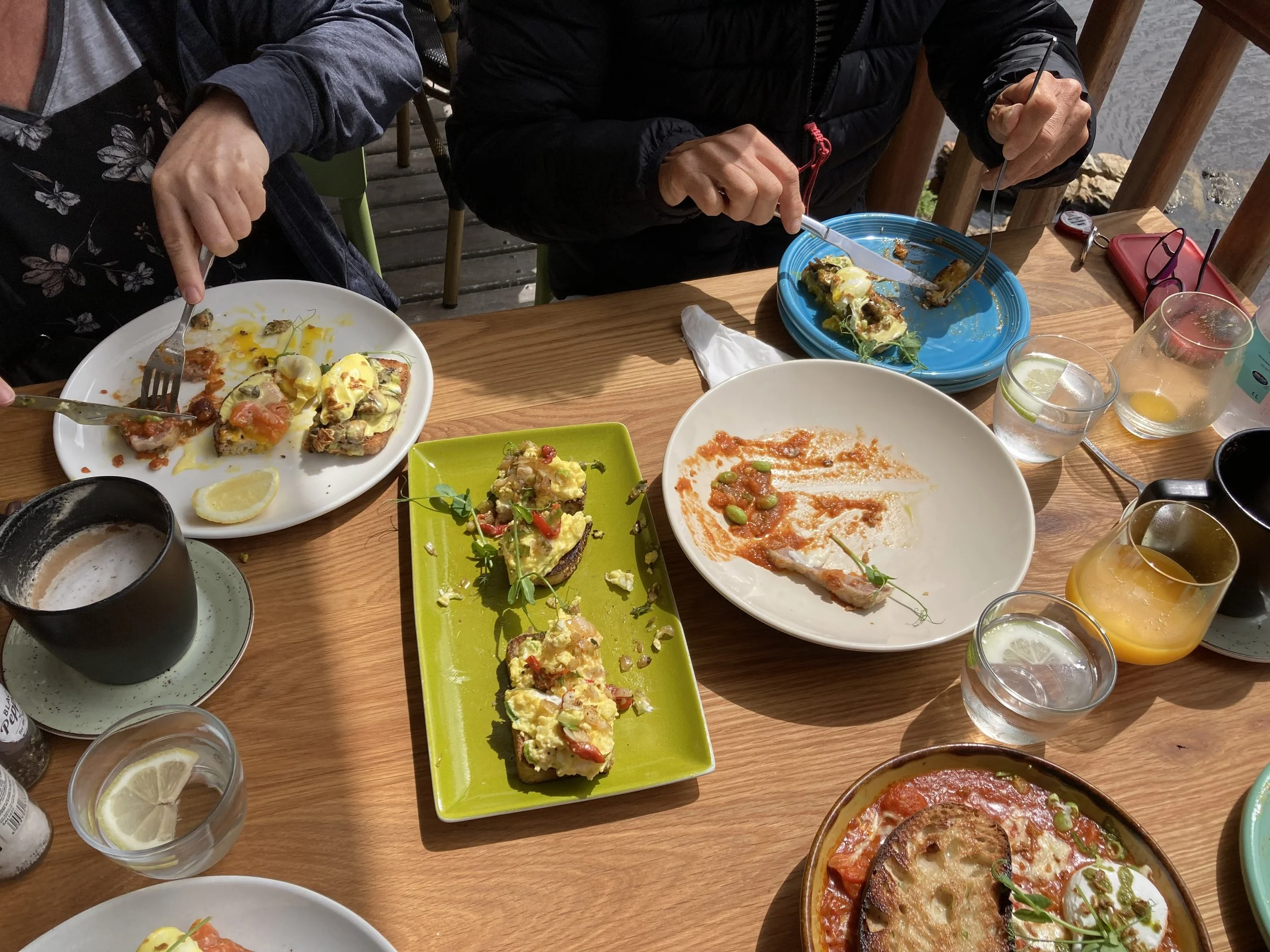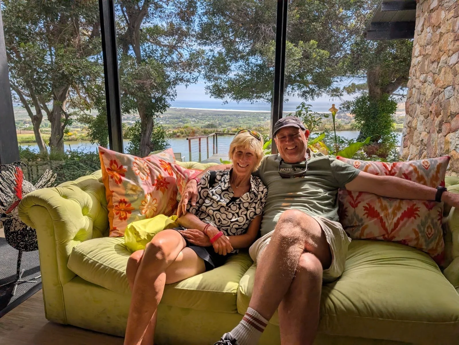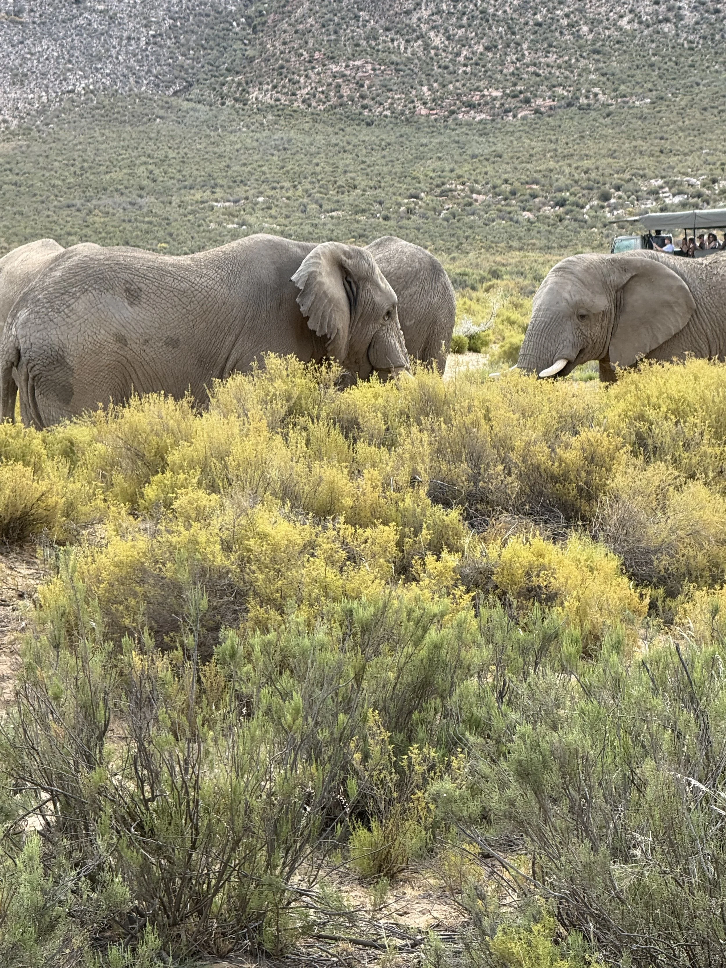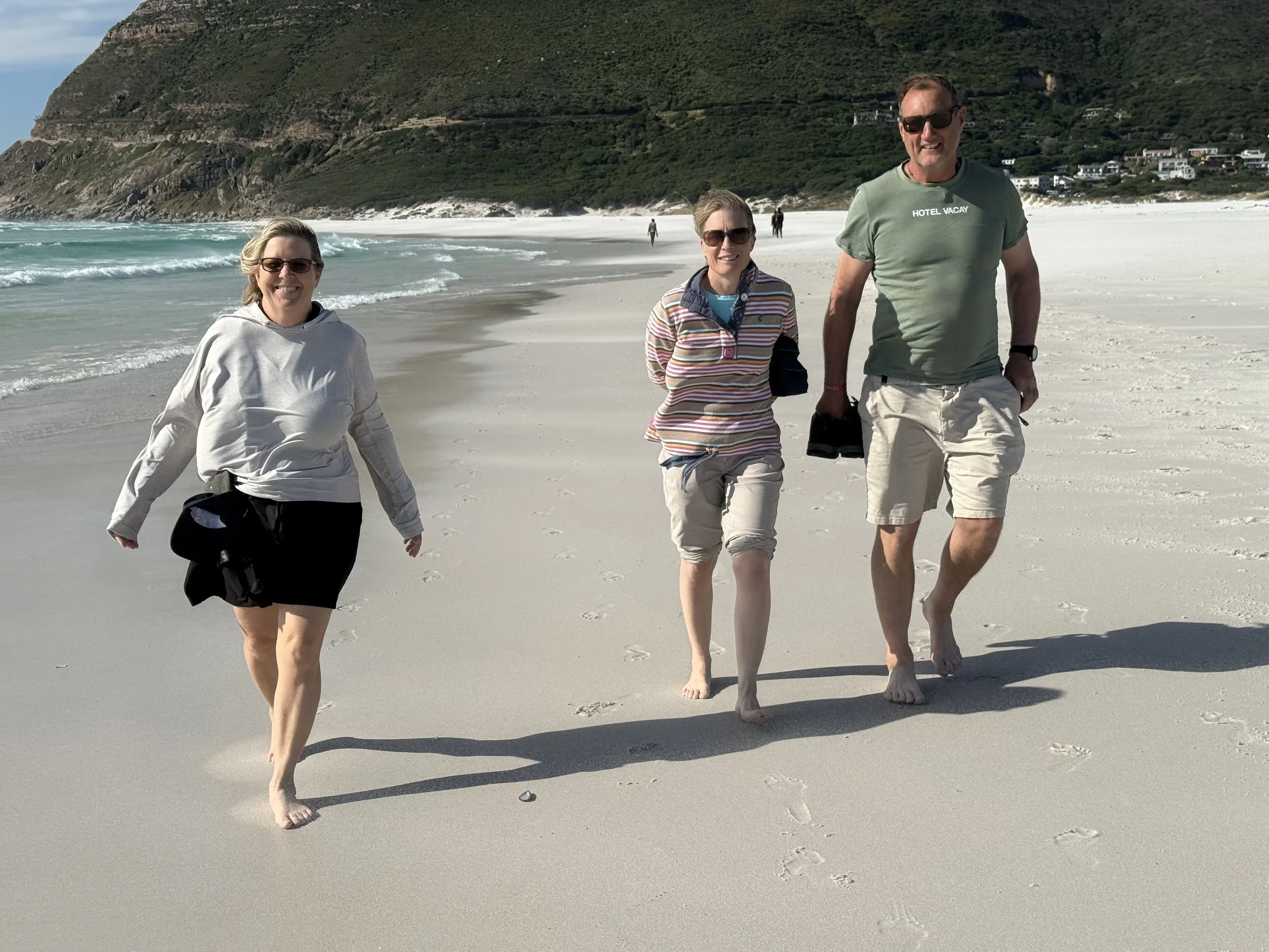 Next day we drove slightly east of Cape Town to Hermanus Beach, not far away from the point where the Atlantic and Indian Oceans meet. The landscape is striking: we hiked from our beautiful hotel, the Whale Coast All-Suite-Hotel along the shore line along the Hermanus Cliff path up to Grotto Beach, we we took a drink on Petra’s birthday at Dutchies. But the absolute highlight came the next morning with a breakfast that eclipsed all superlatives for all the four of us: The Milk on the Beach in Onrus. Once in a lifetime!