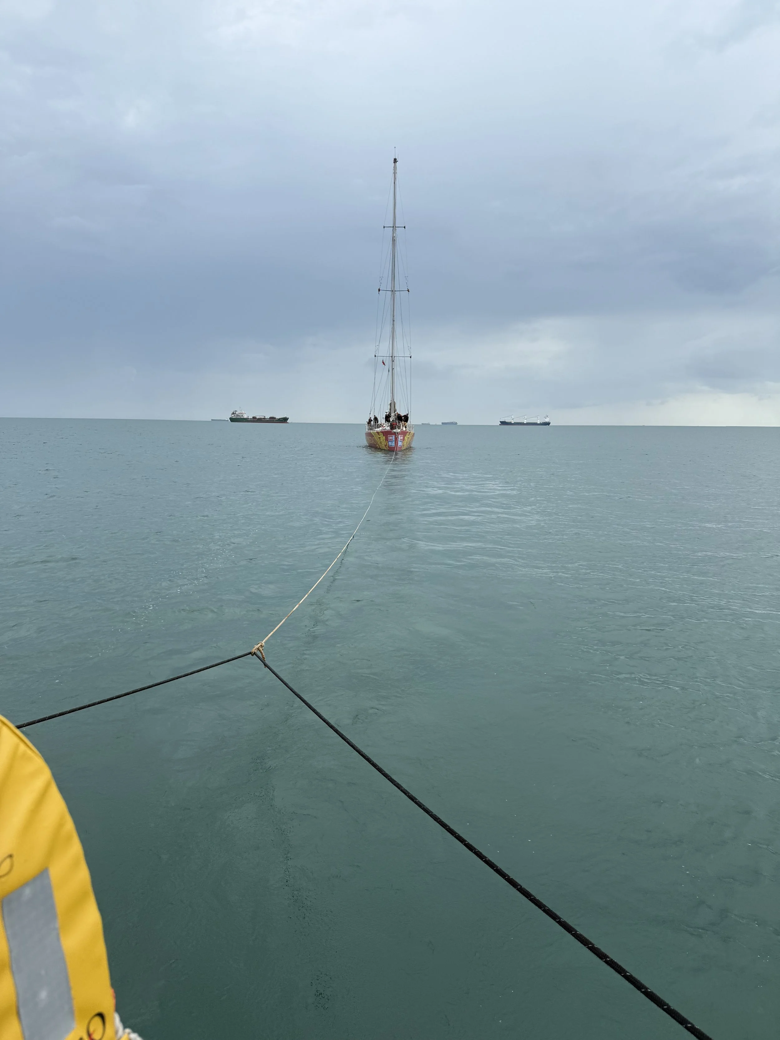 We also practiced towing and being towed—something I hadn’t expected, but it turns out we’ll occasionally need to do this during the race. Some finish lines are miles away from the actual marina, and rather than burning precious fuel motoring in one by one, the boats will tow each other in a kind of slow-motion nautical conga line.